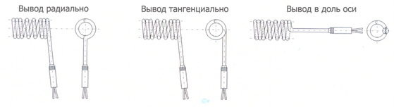 Контактные выводы катушечных электронагревателей выполнены в виде гибких проводов в термостойкой изоляции.