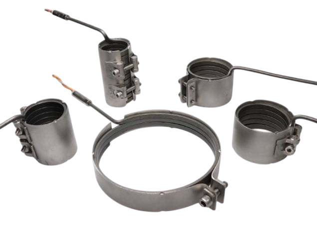 Конструкция кольцевого нагревателя представляет собой расположенный внутри металлической оболочки из нержавеющей стали нагревательный элемент из материала с высоким удельным сопротивлением и изолированный от оболочки спрессованным периклазом MgO, с контактными выводами, расположенными с одной стороны.