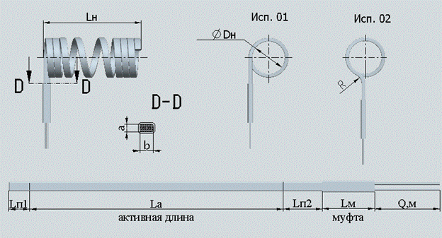 Спиральный электронагреватель может поставляться как в навитом состоянии с диаметром и длиной намотки по заданию потребителя, так и в развернутом виде.